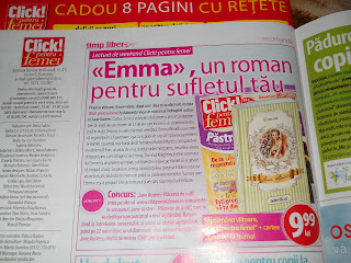Buna dimineata!Astazi am pornit inca din zori sa caut "Click!pentru femei cu noua carte din seria Jane Austen , revista "Click!Pofta buna" cu forme din silicon si revista Joy.Prima pe care am gasit-o a fost "Click!pentru femei".Acest numar ne aduce cartea "Mandrie si prejudecata"(a treia din seria Jane Austen).Revista plus carte costa tot 10 lei.